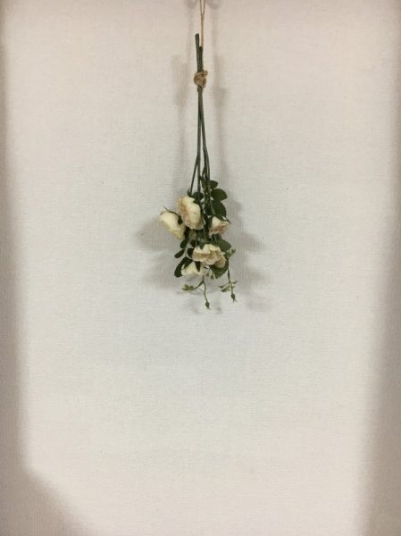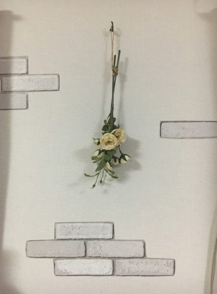 そしてほかにも、小窓のあいだの壁が余っています。なんとなく造花を吊ってはいるものの、なんとも寂しい風情。