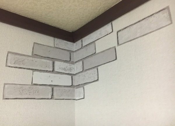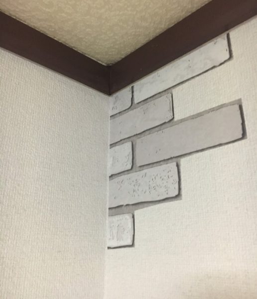 そしてこちらが2つめの壁。レンガ柄が加わったことで味気なさが激減しました♪