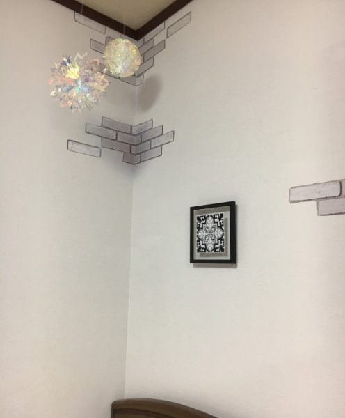 途中、何度か破いたりカットをミスしたりして捨てた部分もありますが、たった1枚のシートで2つの壁スペースを飾り付けることができたのにはすごくお得感があります。